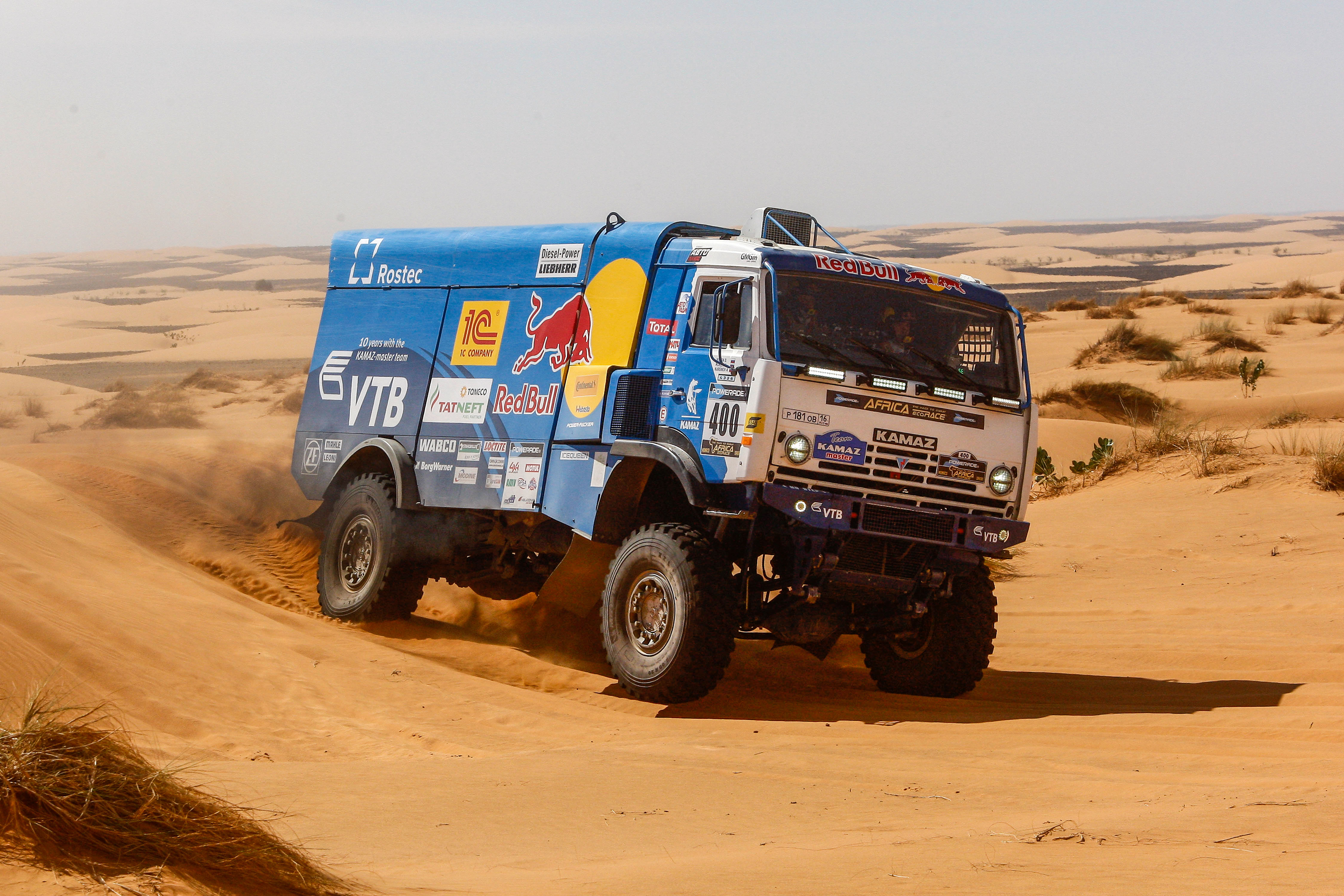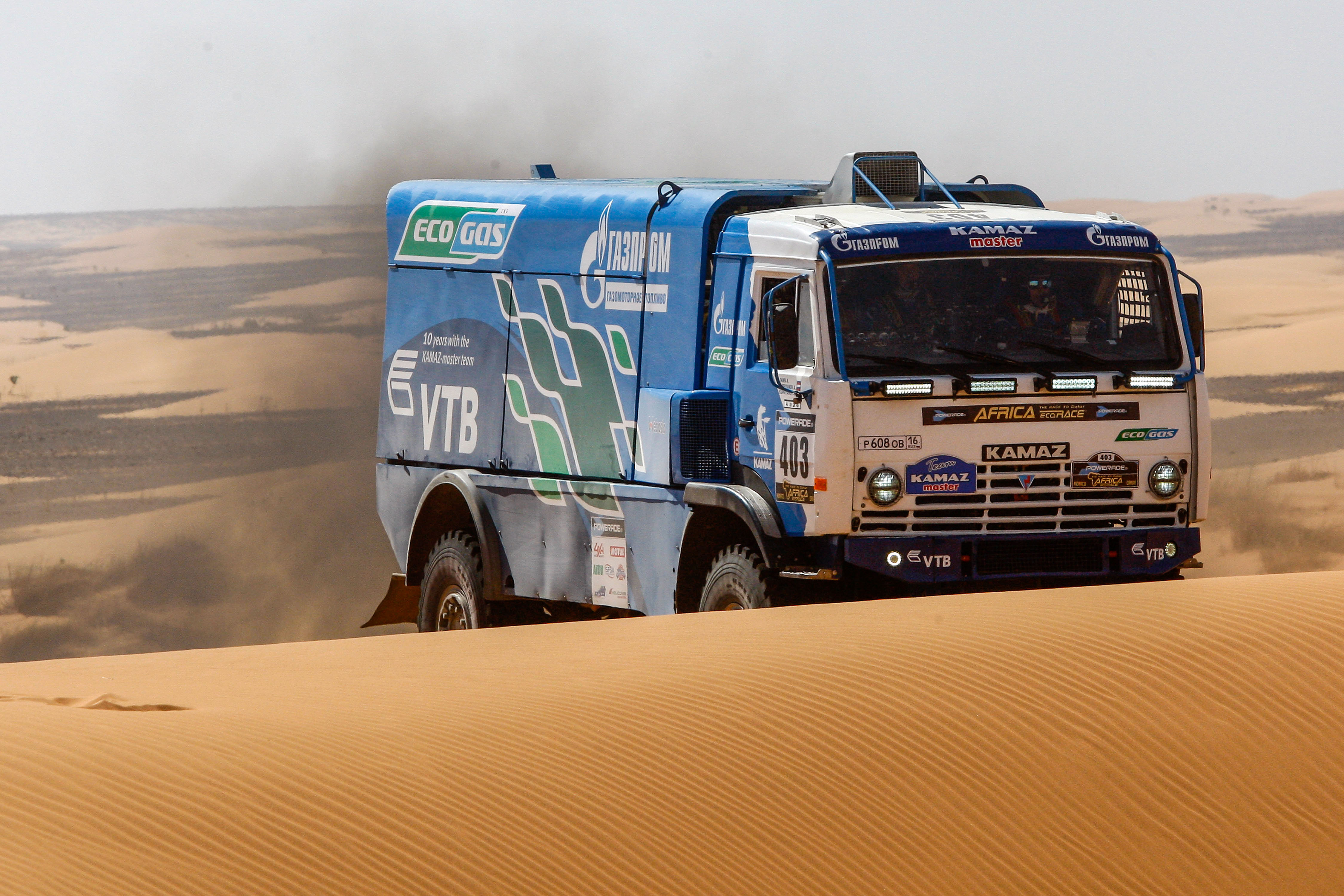 Хотя, как признается Каргинов, этапы Africa Eco Race запомнятся ему надолго. "Буквально позавчера мы ехали по пескам, о сложности которых организаторы предупреждали нас заранее. В нашем понимании это были дюны, но как оказалось, это была песчаная дорога, в так называемой верблюжьей колючке с зыбучим песком. Я первый раз за свою десятилетнюю карьеру столкнулся с тем, что КАМАЗ отказывался ехать по ровной поверхности", - заметил пилот.