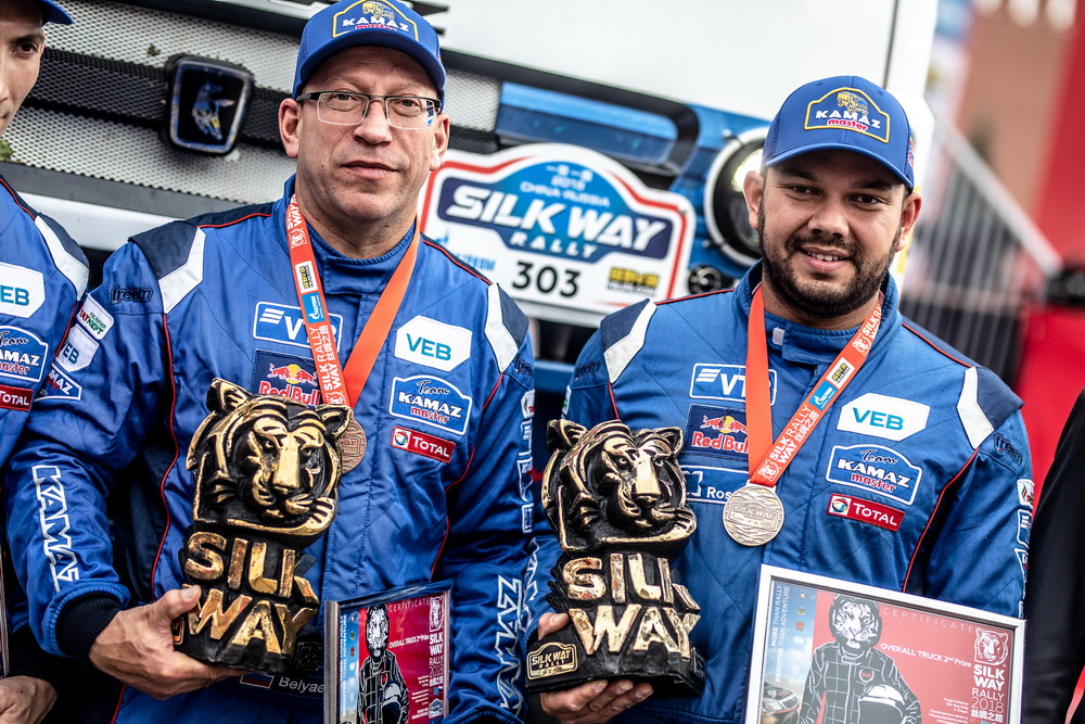 На финише ралли "Шелковый путь-2018" Айдар Беляев объявил о завершении спортивной карьеры. К счастью, никуда из команды прославленный спортсмен не уходит. Так же, как и прежде он будет сосредоточен на своих обязанностях в должности заместителя директора команды по внешним связям, а также продолжит работу по наставничеству с молодым поколением штурманов "КАМАЗ-мастера".