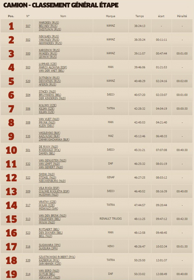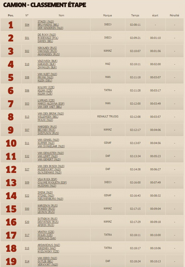 Этап удачно сложился для команды «КАМАЗ-мастер» несмотря на то, что претендентам на 3 и 5 места Алешу Лопрайсу и Хансу Стейси удалось немного приблизится соответственно к Андрею Каргинову и Дмитрию Сотникову.