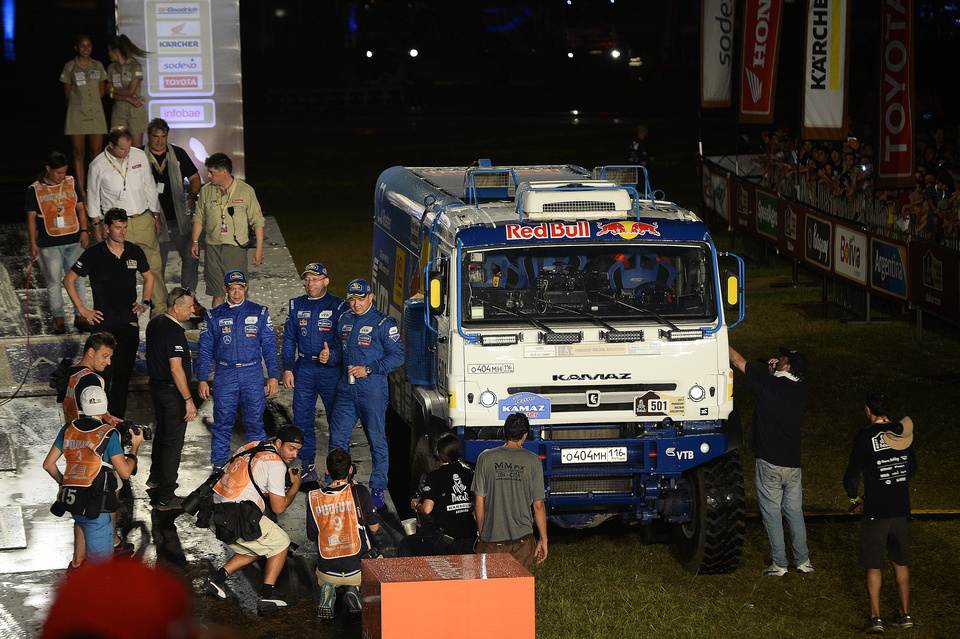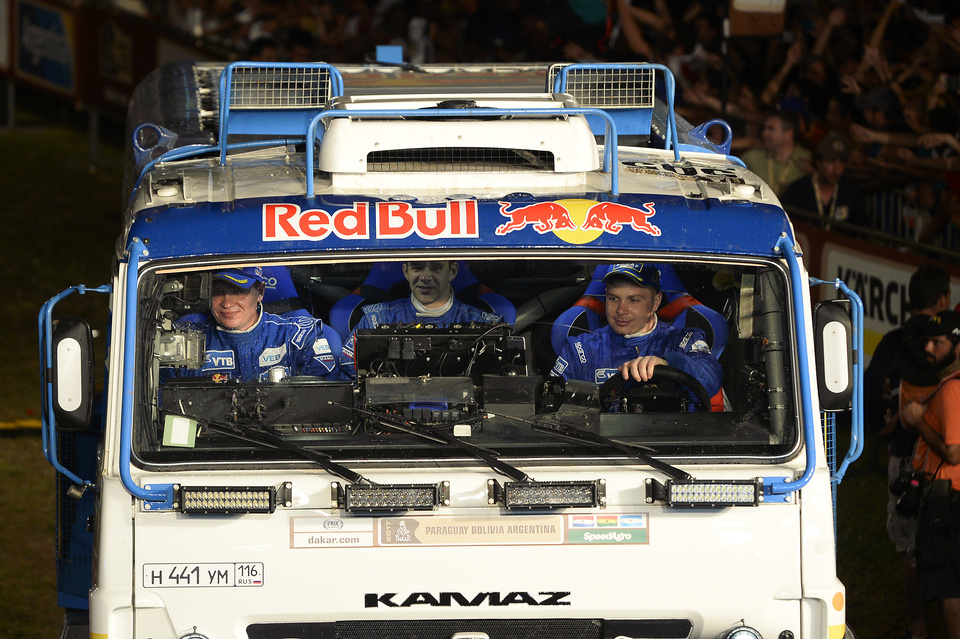 Подиум Дакара-2017 был развернут на набережной реки Парагвай перед официальной резиденцией правительства и президента Парагвая. Ужасная жара в 40 градусов сочетающаяся с высокой влажностью не отпугнула поклонников автоспорта. К моменту появления на площади у зрителей словно открылось второе дыхание и толпа восторженно приветствовала «тяжелый» грузовой зачет Дакара. Живой коридор, оживленно встречал камазовские экипажи: Айрата Мардеева (стартовый номер 501), Эдуарда Николаева (№505), Дмитрия Сотникова (№513) и Антона Шибалова (№515).
