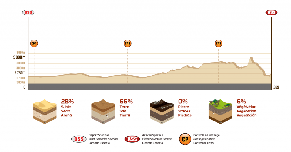 С момента пересечения Перуано-Боливийской границы участникам потребуется своеобразная перезагрузка. Дюны на время исчезнут из ландшафта и на фоне нового пейзажа ежедневный километраж только увеличится. Бдительность на этих быстрых и интересных трассах, которые составляют большую часть маршрута до Уюни, станет самым необходимым навыком. Это марафонский этап и поэтому, как только экипажи доберутся до ночлега в казармах, машины придется оставить в сервисном парке, без обслуживания командами технической помощи.