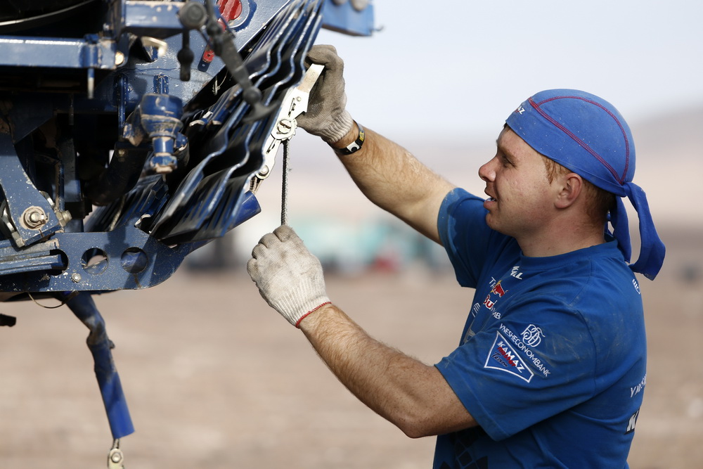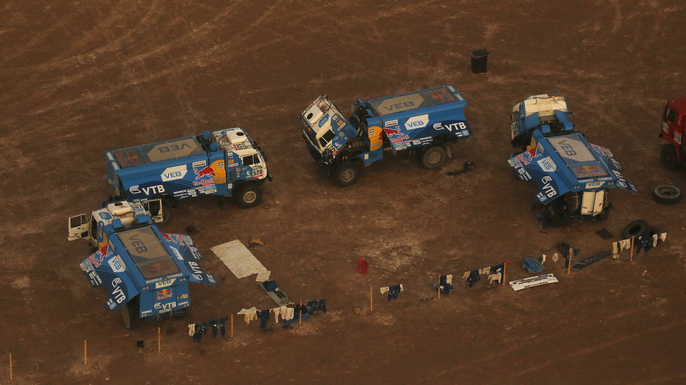Но перед долгожданным отдыхом спортсменов ещё ждет 2 изнурительных дня с ночевкой на специальном изолированном марафонском бивуаке доступ, к которому был закрыт даже для журналистов. Старт этапа Икике – Марафонский бивуак был назначен на 11:35 утра 10 января, выезд с бивуака - в 9:00. Ремонт автомобиля Андрея Каргинова пострадавшего накануне в результате опрокидывания в песчаном каньоне был закончен впритык к этому времени. Экипаж уже сидел в машине, когда механики закрутили последние гайки. Когда машина отъезжала с бивуака случился очень трогательный момент. Участники стоявших рядом с камазовским бивуаков команд начали хлопать. Аплодисменты были вполне заслуженными, ведь работа вокруг грузовика закипела сразу после его прибытия на бивуак и ни на секунду не замедлялась в течение более 14 часов! К рассвету механики валились с ног от усталости, ведь попутно они успели обслужить еще и машины Эдуарда Николаева, Дмитрия Сотникова и Айрата Мардеева.
