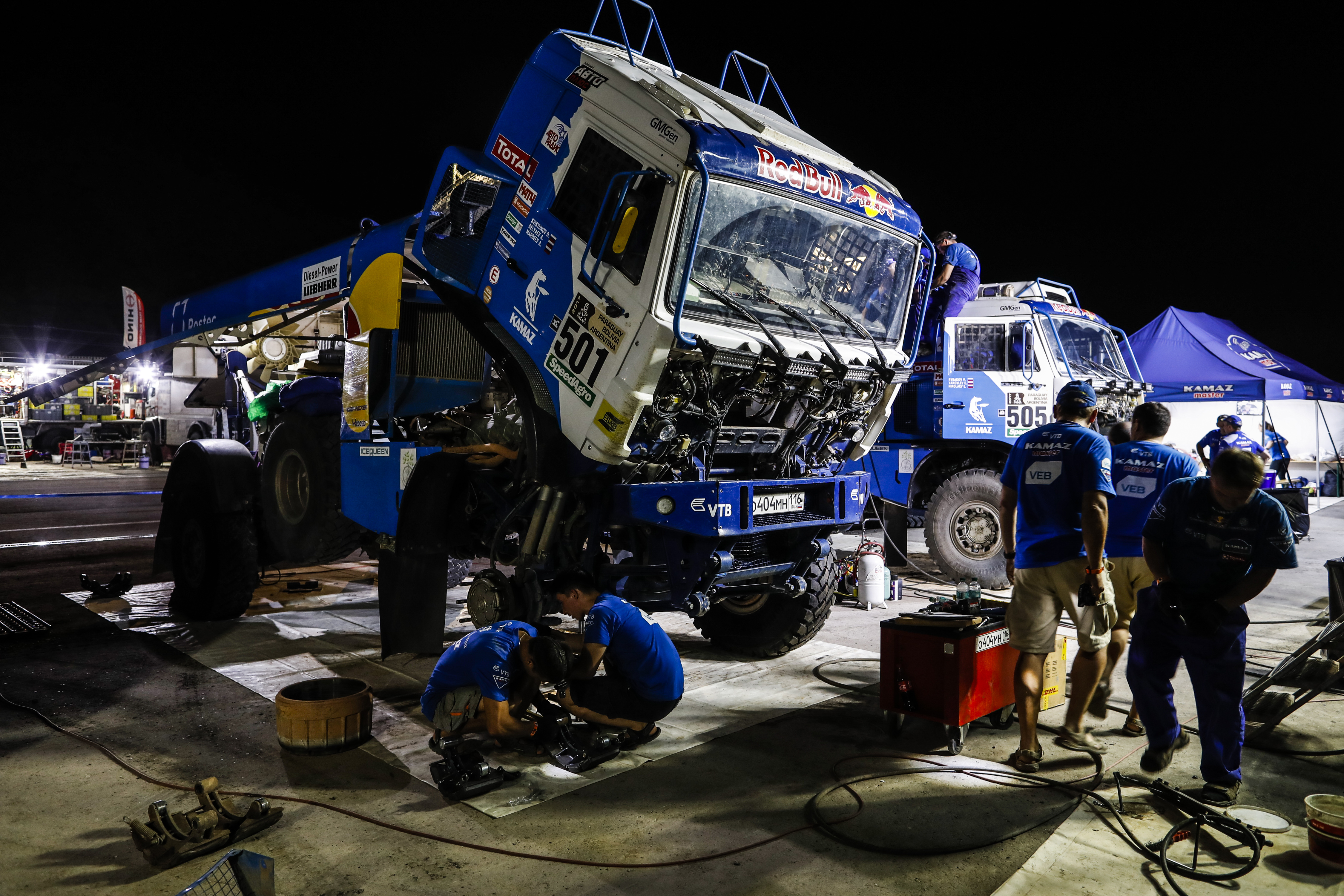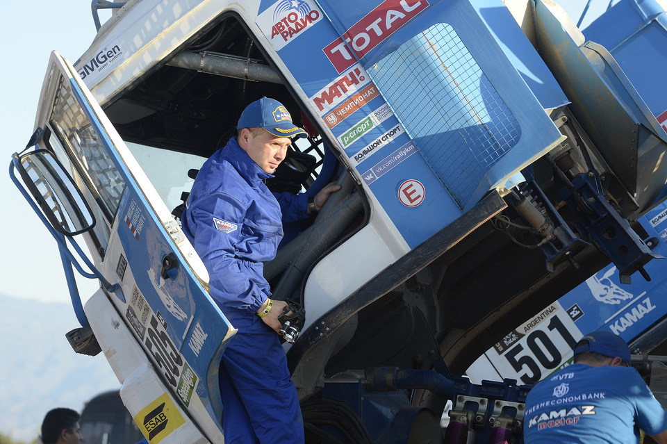 “Рано. Если 14-го января будем стоять на подиуме в Буэнос Айресе, вот тогда и поздравите”, - мудро заметил ветеран команды Айдар Беляев. Действительно, Дакар – это всегда соревнование до последнего метра. Сегодняшний спецучасток Сан-Хуан – Рио Куарто прибавил уверенности в том, что главный трофей гонки все-таки уедет в Россию. На 288-километровом спецучастке уверенно лидировали экипажи “КАМАЗ-мастера”. Опасения вызывала первая часть сегодняшней трассы с 50-километровой секцией дюн. Ни у одного из камазовских экипажей ни он, ни последующие километры спецучастка к счастью проблем не вызвали. Эдуард Николаев показал лучший на сегодня результат увеличив отрыв от главного конкурента россиян Жерара Де Роя еще на 14 минут. В тройку россиян - Николаев, Мардеев, Сотников - на этапе сумел вклиниться только аргентинец Федерико Виллагра на Iveco, показавший второй результат, уступив Эдуарду Николаеву 52 секунды. Антону Шибалову пришлось задержаться на трассе, чтобы помочь экипажу Равиля Маганова (№378), у которого вышла из строя коробка передач, и отбуксировать его на бивуак.