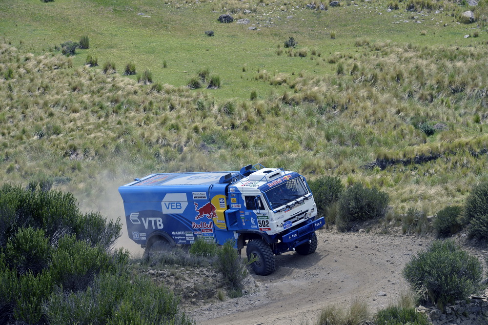 Механики команды «КАМАЗ-мастер» колдовали всю ночь над машиной Эдуарда Николаева. Напомним, на вчерашнем этапе машина на одном из поворотов в пыли на высокой скорости съехала с трассы, от удара о земляной бруствер на машине погнулся правый лонжерон рамы, повело передний мост. Устранение неисправности было закончено лишь в 9.00 утра, то есть почти к самому старту сегодняшнего этапа. Возможно, чувство ответственности перед командой и чувство благодарности перед механиками стали сегодня хорошими мотиваторами для экипажа Эдуарда – он финишировал с лучшим временем (03:34:01). Руководитель команды Владимир Чагин празднует сегодня 45-летие и, пожалуй, лучшего подарка для него трудно было придумать. Вспомнился заголовок статьи во французском L’Equipe пятилетней давности - «Пятьдесят на сорок», речь тогда шла о пятидесятой победе Чагина на этапах Дакара случившейся аккурат в день его сорокалетия. Что ж, у воспитанников «Царя» еще достаточно времени, чтобы попытаться повторить рекорды своего наставника.
