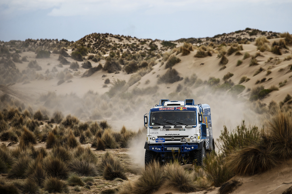 Спортивные экипажи, возможно, еще больше бы оценили старания пятикратного победителя ралли “Дакар” если бы проложенные им треки были бы сухими и от них ежедневно не приходилось отрезать солидные куски из-за непрекращающихся дождей. Как например, это случилось сегодня на спецучастке Уюни – Сальта для грузового зачета ралли. Вместо 492 километров второй части начавшегося вчера марафонского этапа экипажам оставили только 171, отрезав аргентинскую часть сегодняшней трассы. Тем не менее, экипажи “КАМАЗ-мастера” не упустили возможности подправить свое положение в генеральной классификации.