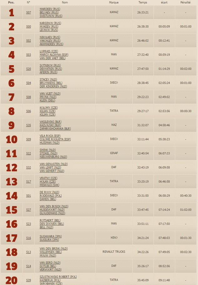 Для грузовых автомобилей, в этот второй марафонский день песка будет в два раза больше обещали организаторы. «Кто-то обязательно застрянет в дюнах на пути к Икике, а это чревато последствиями в борьбе за титул в категории», - гласил официальный релиз. Сошедших в эти два дня в грузовой категории было действительно много.
