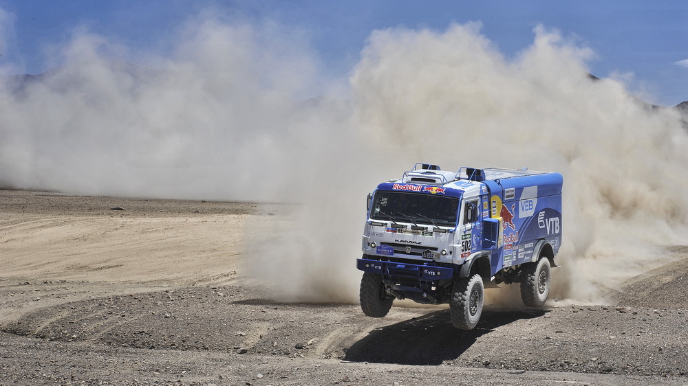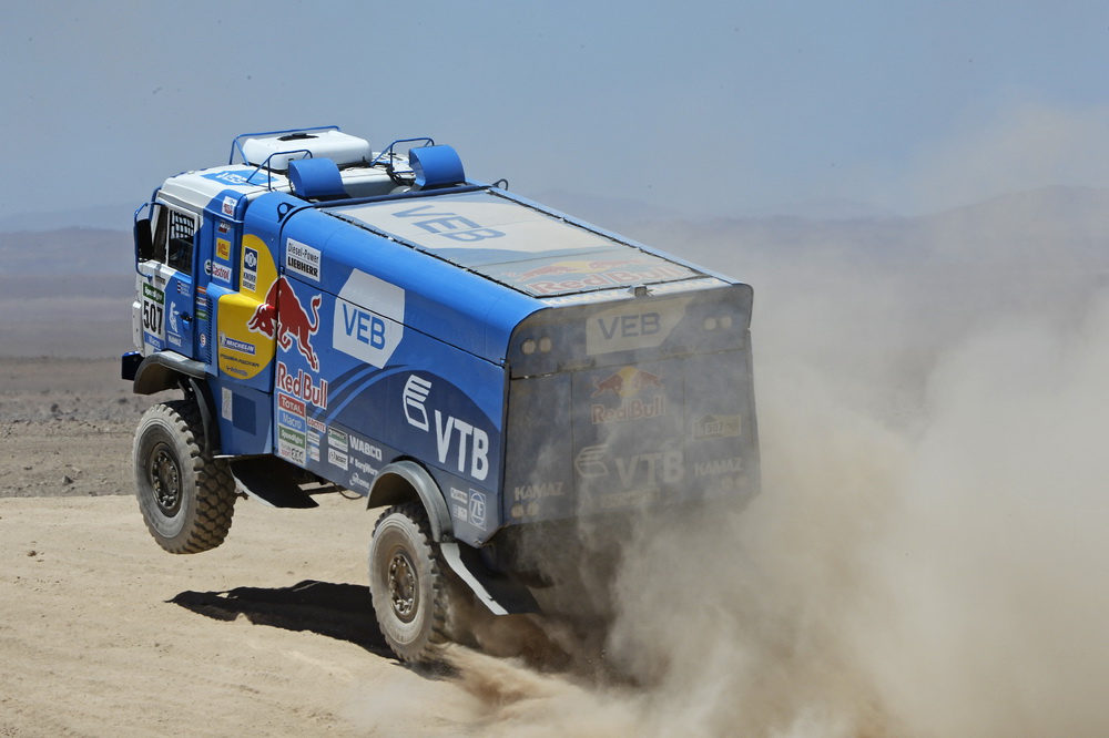 «Грузовая категория Дакара – это как две планеты. Одна это - «КАМАЗ-мастер», другая это все остальные грузовые команды», - сказал вчера вечером руководитель грузового зачета Дакара Фабьен Кальве. Француз выглядел несколько расстроенным после сообщений с трассы о проблемах постигших голландца Жерара Де Роя. Напомним его IVECO с поломкой задней оси несколько часов простоял на маршруте этапа Чилесито – Копиапо. На бивуак его машина пришла своим ходом ближе к полуночи. На официальном сайте организаторов гонки так и не появилось никакой информации о результатах с которыми экипаж Де Роя закончил этот этап, не было также информации о штрафах за не взятые навигационные точки. Зато утром многие с удивлением обнаружили 501 экипаж в стартовом списке на 26 позиции. Хотя многие были уверены, что если голландцу повезет и его допустят до старта, то в лучшем случае стартовать ему придется по выражению бывалых дакаровцев в «гарнире», т.е. позади всех остальных грузовиков.