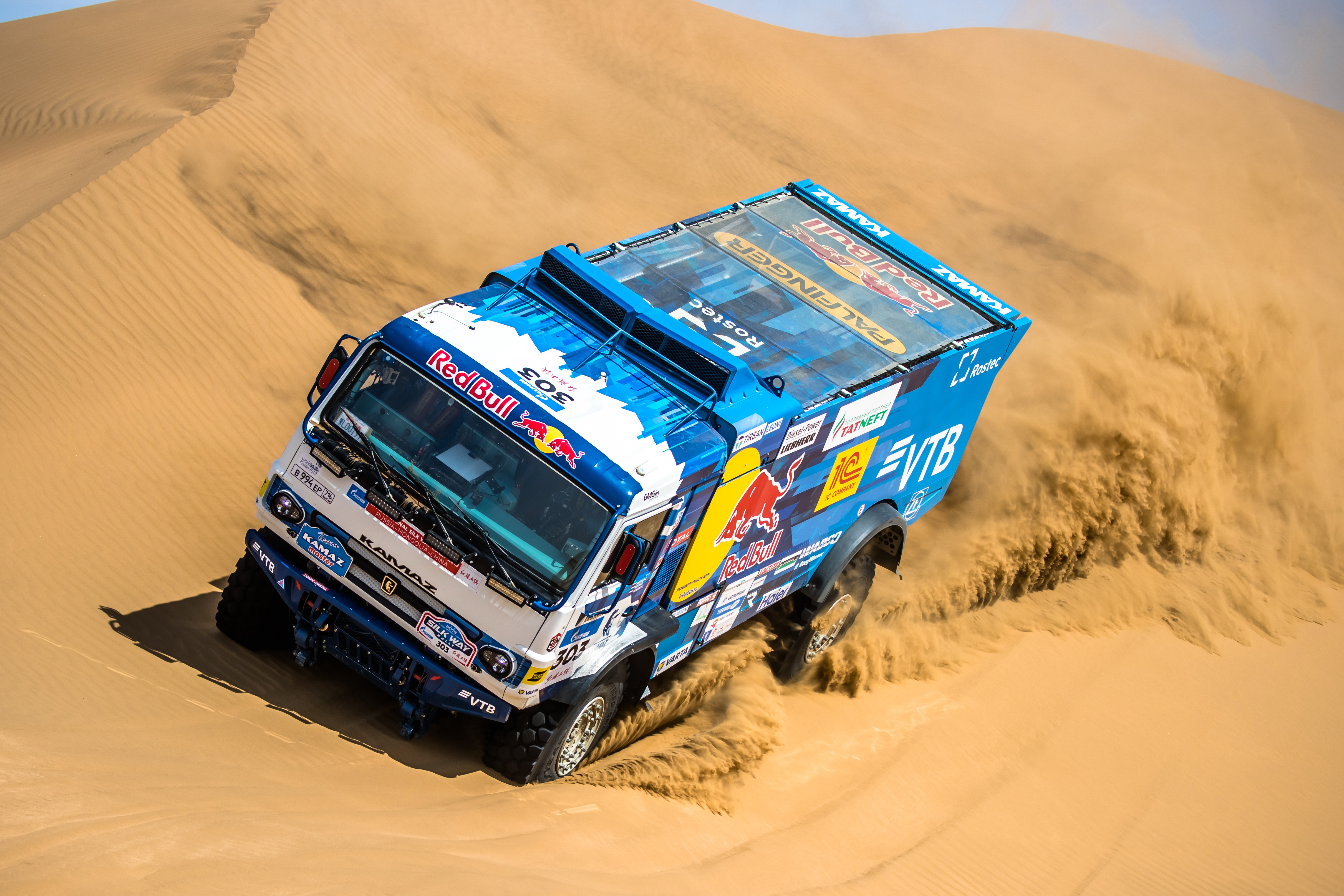 Воскресный день вышел успешным: «КАМАЗ-мастер» расположился на первых трех местах общего грузового зачета. Идущий четвертым Мартен ван ден Бринк проигрывал лидеру Антону Шибалову 1 час 20 минут, от третьего места голландца отделяли 55 минут. Учитывая большой временной отрыв, задачей экипажей российской команды было исключить риск и пройти дистанцию в рабочем режиме.