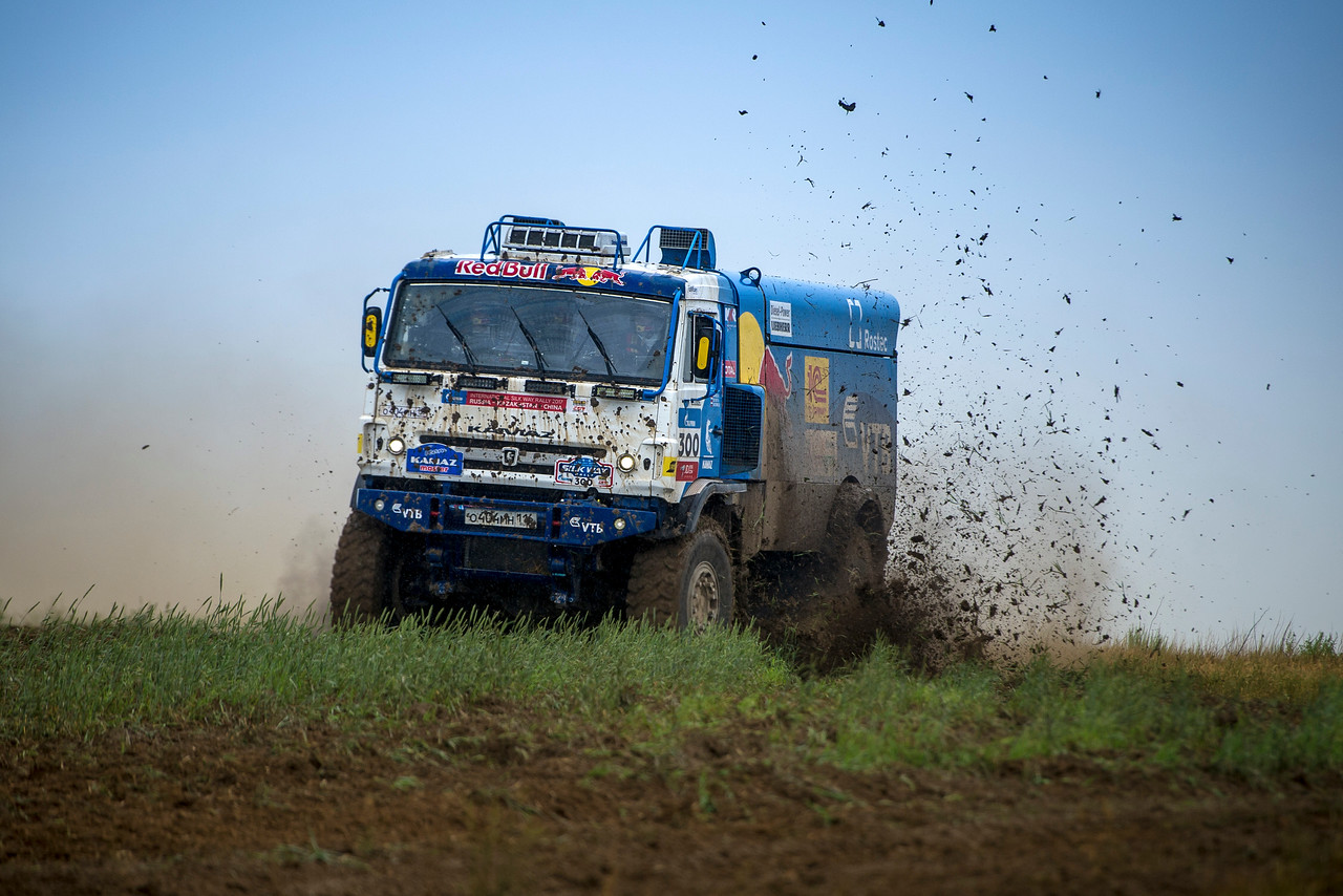 В итоге, когда все перевернутые джипы были спасены, КАМАЗы двинулись в бой, но не совсем гладко все сложилось для этих трех экипажей: небольшие технические проблемы и замена колеса – то, из-за чего ребята потеряли драгоценные минуты. Экипаж Эдуарда Николаева, который накануне потерял 2 часа из-за проблемы с карданным валом, сегодня показывал лучшее время в первой половине спецучастка, но на финише в итоге стал четвертым.