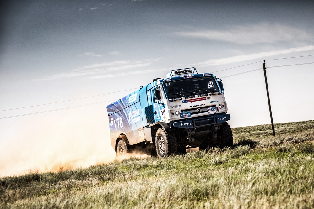 «Сегодня такой необычный спецучасток, приходилось внимательно оценивать дорогу, много грязи, скользко, грузовик очень тяжелый, непредсказуемый, много оврагов, узкие дорожки. Поэтому нужна была полная концентрация, чтобы не «начудить». Довольны сегодняшним днем: очень насыщенный, интересный – и песок был, и степные дорожки, и под конец начались уже такие поля с черноземом, которые дождь хорошо размыл. У джипов, слышал, было много переворотов из-за скользкой трассы и надо было быть очень бдительными и внимательными».