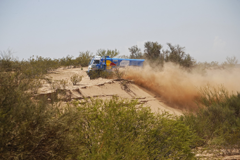 Организаторы ралли «Дакар» были вынуждены сократить сегодняшний кольцевой 285-километровый спецучасток Белен - Белен. Сильнейшая жара стала причиной тепловых ударов у большого количества участников гонки. Медицинские вертолеты не успевали доставлять с трассы изнуренных мотоциклистов и квадроциклистов, стартовавших сегодня первыми. Сильнейшая жара сделала местные пески непроходимыми для большинства участников гонки. Именно песками и решили пожертвовать организаторы, отрезав 100-километровый участок после второй контрольной точки. Но даже состоявшаяся часть СУ была весьма драматичной для многих участников грузового зачета.