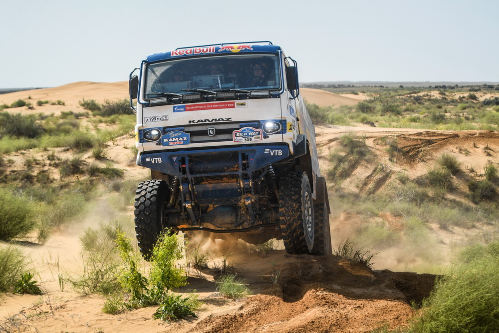 Одновременно с пятым этапом «Шелкового Пути» стартовал этап Чемпионата России, который традиционно проходит во время ралли «Шелковый Путь». Это внесло новую интригу: экипажи, потерявшие время на предыдущих спецучастках, могут попробовать начать все заново и побороться за призовые места в Чемпионате России. Интересно, что этой же возможностью воспользовался и голландский гонщик Мартин ван ден Бринк, который, к слову, не смог сегодня показать хороший результат, застряв в грязи и потеряв на этом около 30 минут. Лидирующий в генеральном зачете Дмитрий Сотников тоже не смог избежать проблем: остановка из-за двигателя стоила гонщику 20 минут и сократила расстояние до следующего претендента в генеральном зачете до 44 секунд. Андрей Каргинов, лидировавший в течение всего дня, завершил спецучасток с лучшим временем и с полностью забрызганным грязью лобовым стеклом, позже выяснилось, что стеклоочистители перестали работать, и экипаж принял решение не терять времени на замене. Антон Шибалов показал отличный темп, державшись в минуте от лидера в течение всей гонки, но ближе к финишу ребята потеряли на навигации около шести минут, которые и подвинули их на третье место. Второе же занял экипаж Эдуарда Николаева, который тоже не обошелся без потерь: они останавливались для помощи Дмитрию Сотникову. Айрат Мардеев показал четвертое время на спецучастке, следом за ним финишировали Дмитрий Сотников и Сергей Куприянов. Последний потерял время, оказывая помощь двум экипажам.