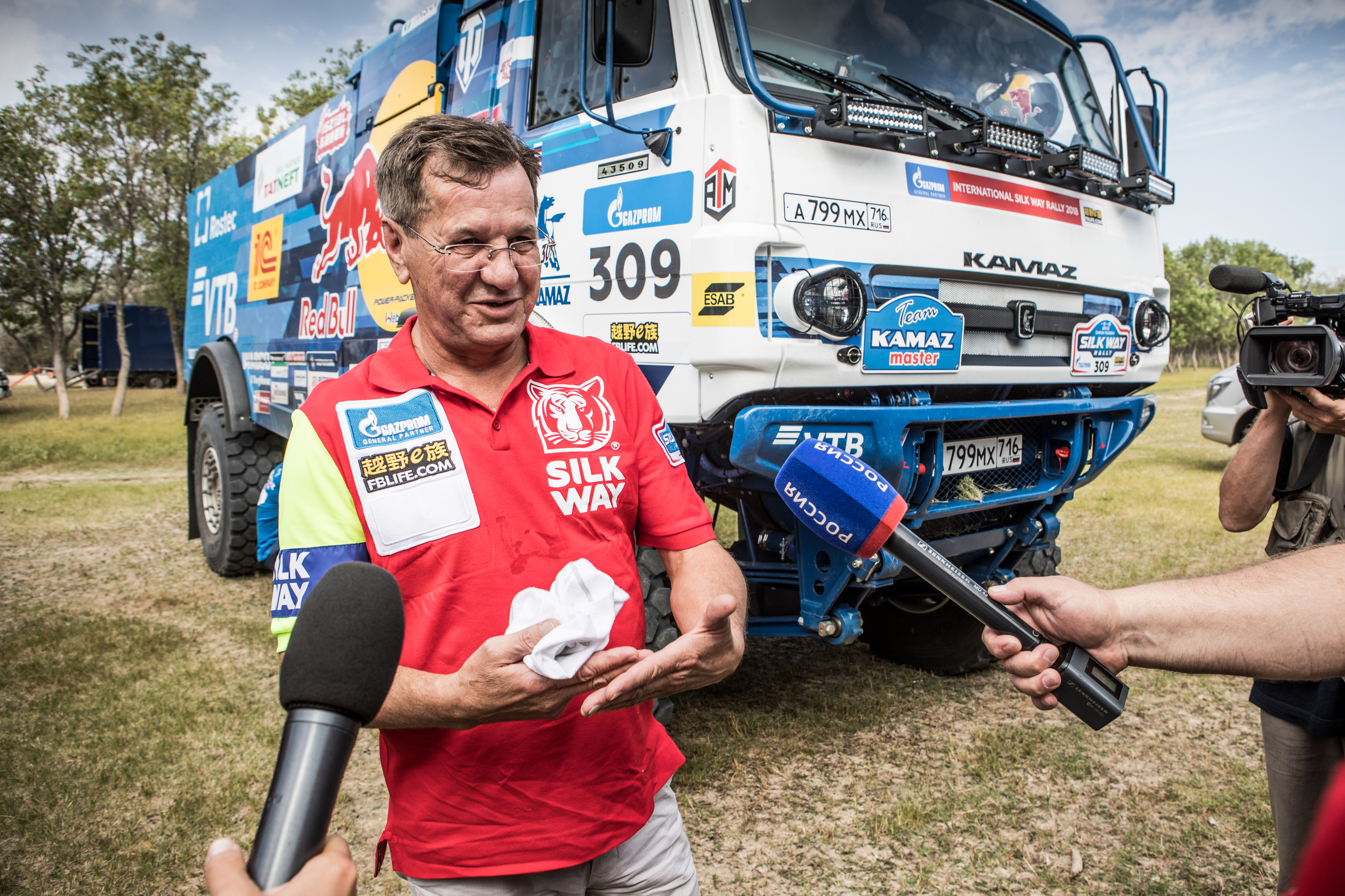 Сергей Савостин – руководитель команды «КАМАЗ-мастер» на гонке «Шелковый путь – 2018»: «Команда прибыла в Астрахань. Вчера, в день прибытия, развернули зону сервиса и сегодня с утра организаторы предоставили возможность выехать на небольшой тестовый участок для того чтобы провести предстартовую подготовку, посмотреть состояние машин, немного вкатиться и быть готовыми к старту. После технических проверок все боевые машины поставят в закрытый парк, доступ к ним будет закрыт и получим их только вечером завтрашнего дня перед торжественным стартом».