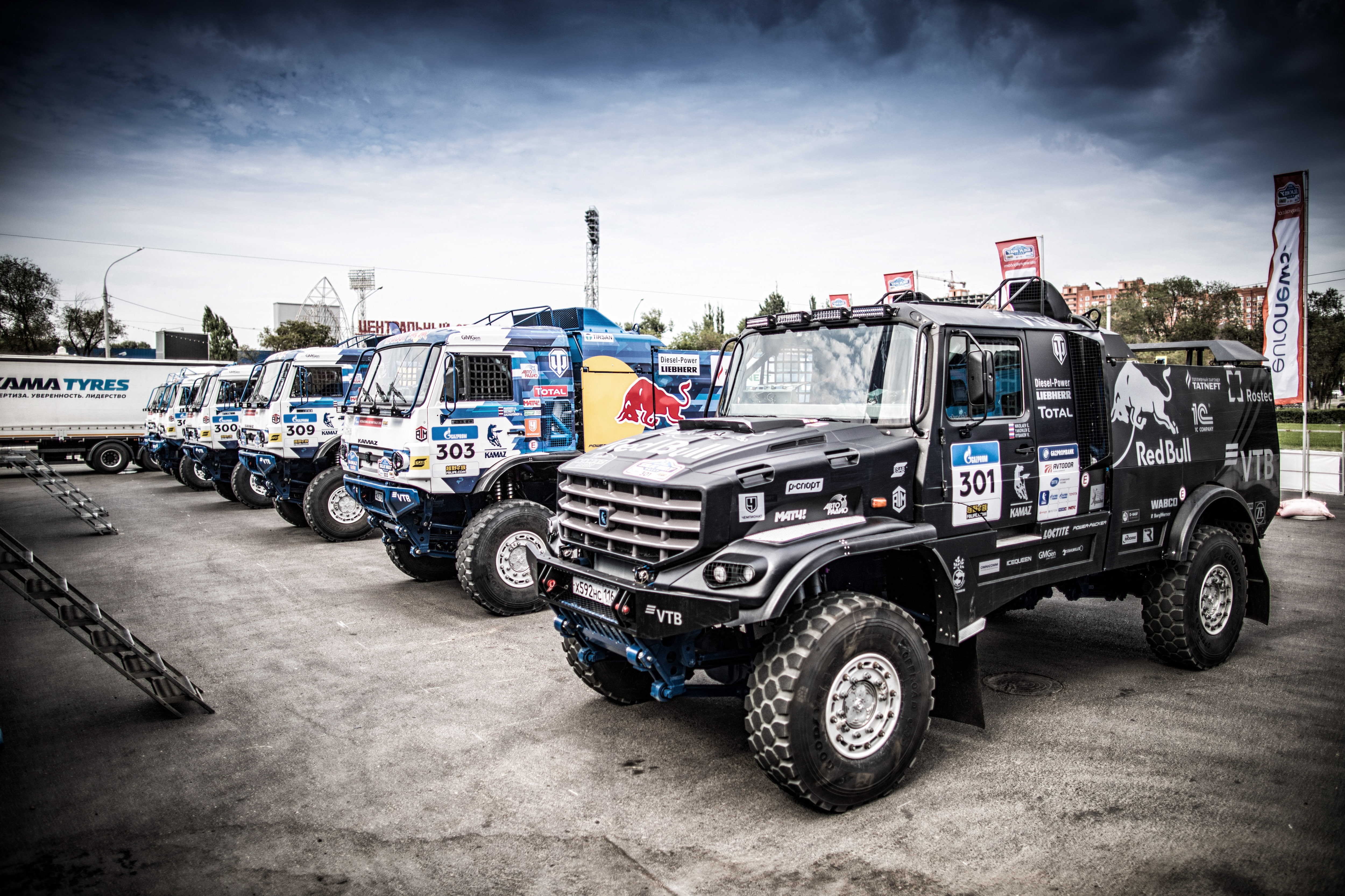 Главными новинками этого года стали новые грузовики Андрея Каргинова и Айрата Мардеева с 13-ти литровым двигателем DCEC, точно такой же двигатель установлен на машинах Дмитрия Сотникова и Эдуарда Николаева. Сергей Куприянов будет выступать за команду на газо-дизельном КАМАЗе с двигателем Либхер, на таком же двигателе поедет экипаж Антона Шибалова, который будет как и в прошлом году выполнять функции быстрой технички. Грузовик капотной компоновки выедет на старт под управлением опытного пилота Эдуарда Николаева, который, как и Айрат Мардеев на своем грузовике, будет испытывать работу 16-тиступенчатой автоматической коробки передач.
