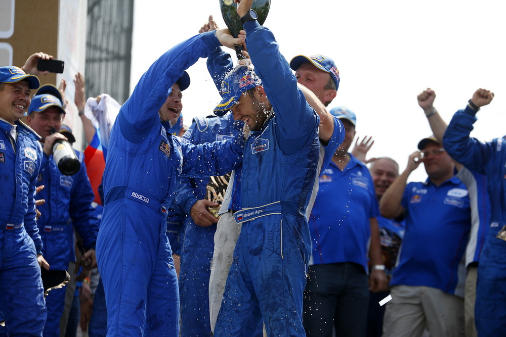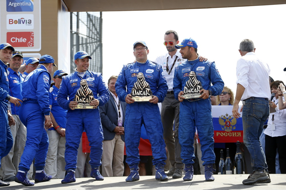 В этом году синяя армада «КАМАЗ-мастера» с самого начала считалась фаворитом соревнования и претендентом на главный трофей. Но, пожалуй, никто не ожидал от нового поколения камазовских пилотов того, что им удалось в итоге сделать. По признанию Чагина команда выполнила задачу максимум. Три экипажа - Айрата Мардеева, Эдуарда Николаева и Андрея Каргинова заняли весь пьедестал почета в категории грузовых автомобилей. А пятое место экипажа Дмитрия Сотникова еще больше укрепило тотальное доминирование российских грузовиков на престижном международном ралли!