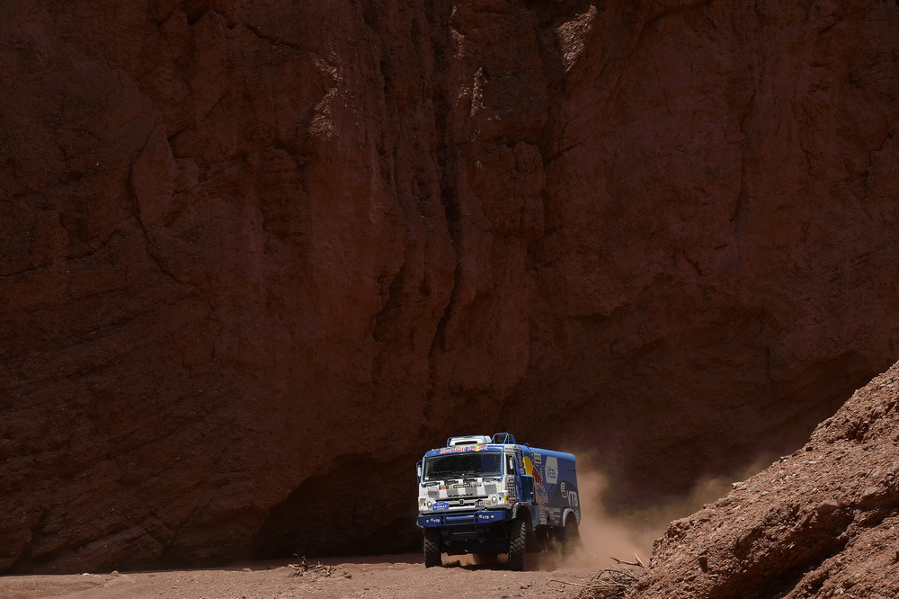 К старту 8 этапа ралли Дакар 47 грузовиков из 55 стартовавших 2 января в Буэнос Айресе остается в гонке. Отличная статистика. В прежние годы после дня отдыха процент выбывших участников по техническим причинам был побольше. Это лишнее подтверждение тому, что трасса первой половины гонки была более-менее щадящей как для людей, так и для техники. Хотя, кажется, с сегодняшнего этапа Сальта-Белен спецучастки начинают всё больше напоминать классический внедорожный Дакар. Местечко Белен находится в северо-западной аргентинской провинции Катамарка известной своим засушливым климатом. Участниками гонки предстояло пройти два скоростных СУ длиной 162 и 232 километра разделенных 140-километровой зоной нейтрализации.