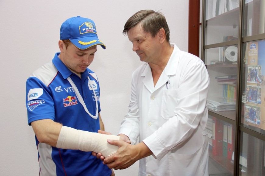 Одним из профессиональных рисков для пилотов гоночных грузовиков является компрессионный перелом позвоночника. Тряска во время преодоления бездорожья на трассе и тяжелый шлем провоцируют травмы позвоночника. Особенно страдает шейный отдел позвоночника. После выездного осмотра врачи Центра начали консультировать спортсменов дистанционно, посредством Интернета.