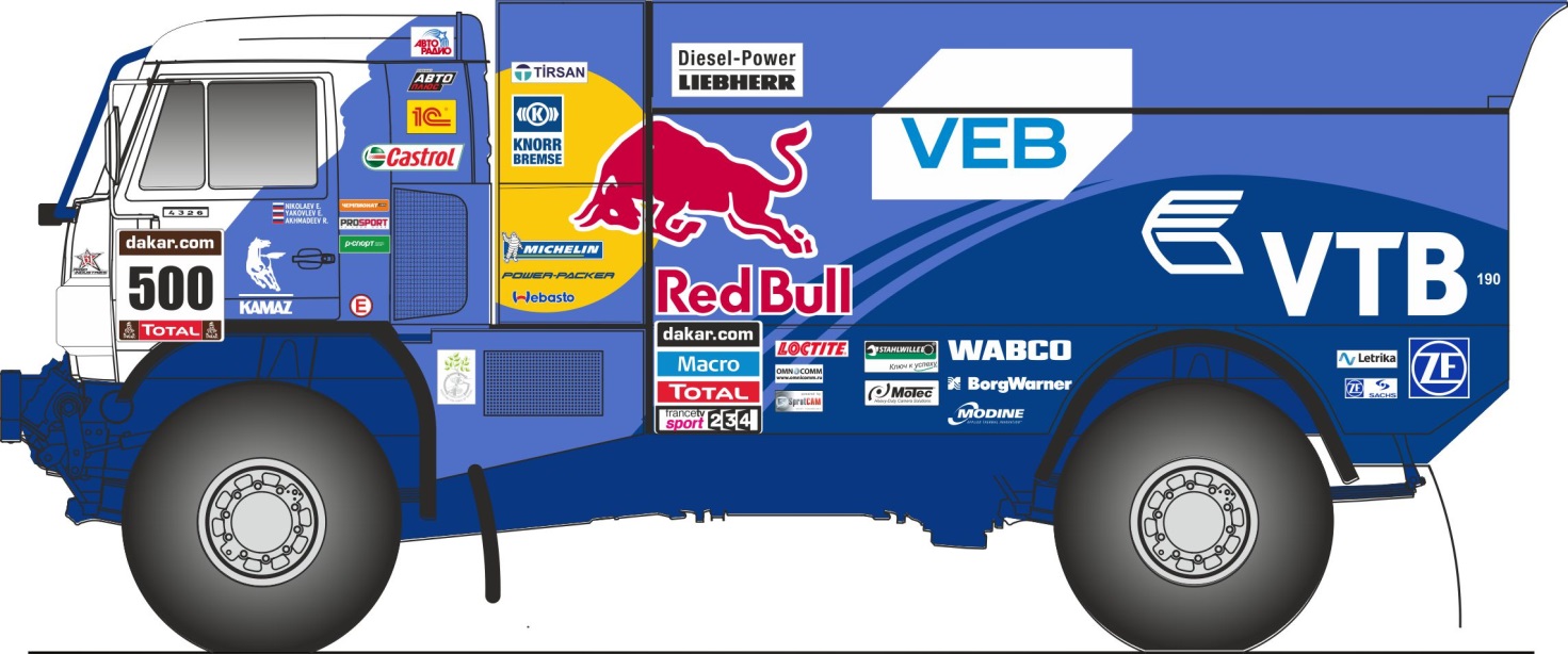 Команда использует для участия в соревнованиях различные модификации хорошо зарекомендовавшего себя автомобиля КАМАЗ-4326. За текущий год на всех машинах внедрены и освоены сразу несколько технических новинок. Например, все автомобили получили усовершенствованную тормозную пневмоаппаратуру Wabco и Knorr-Bremse с электронным управлением. Очень серьезная работа была проведена по улучшению характеристик подвески с точки зрения снижения экстремальных нагрузок на экипаж и возможности движения с большими скоростями в трудных дорожных условиях.