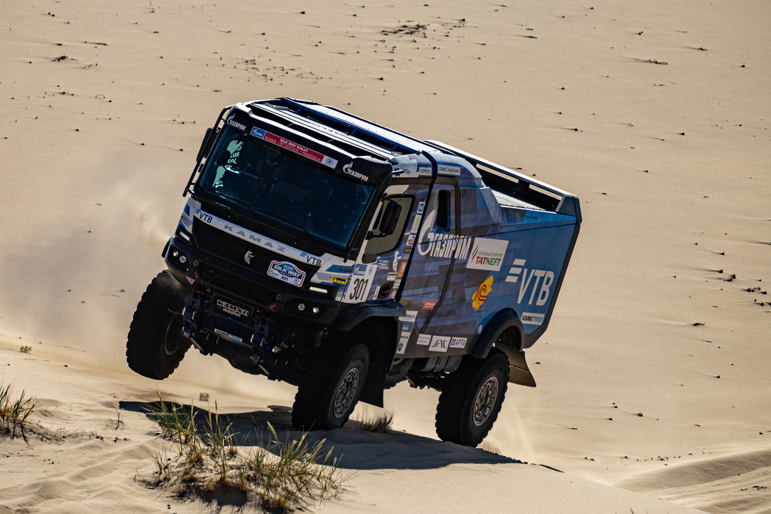 Антон Шибалов, участвующий в гонке после почти двухлетнего перерыва, чувствует себя за рулем газодизельного «КАМАЗ-43509» в песках все увереннее: «Отличный день! Не скажу, что суперсложный, но рабочий. Но после того, как мы увидели, что Сергей Вязович стоял, немного изменили тактику, работали больше на надёжность. Теперь для нас самое главное – доехать до финиша и не растерять свои результаты».