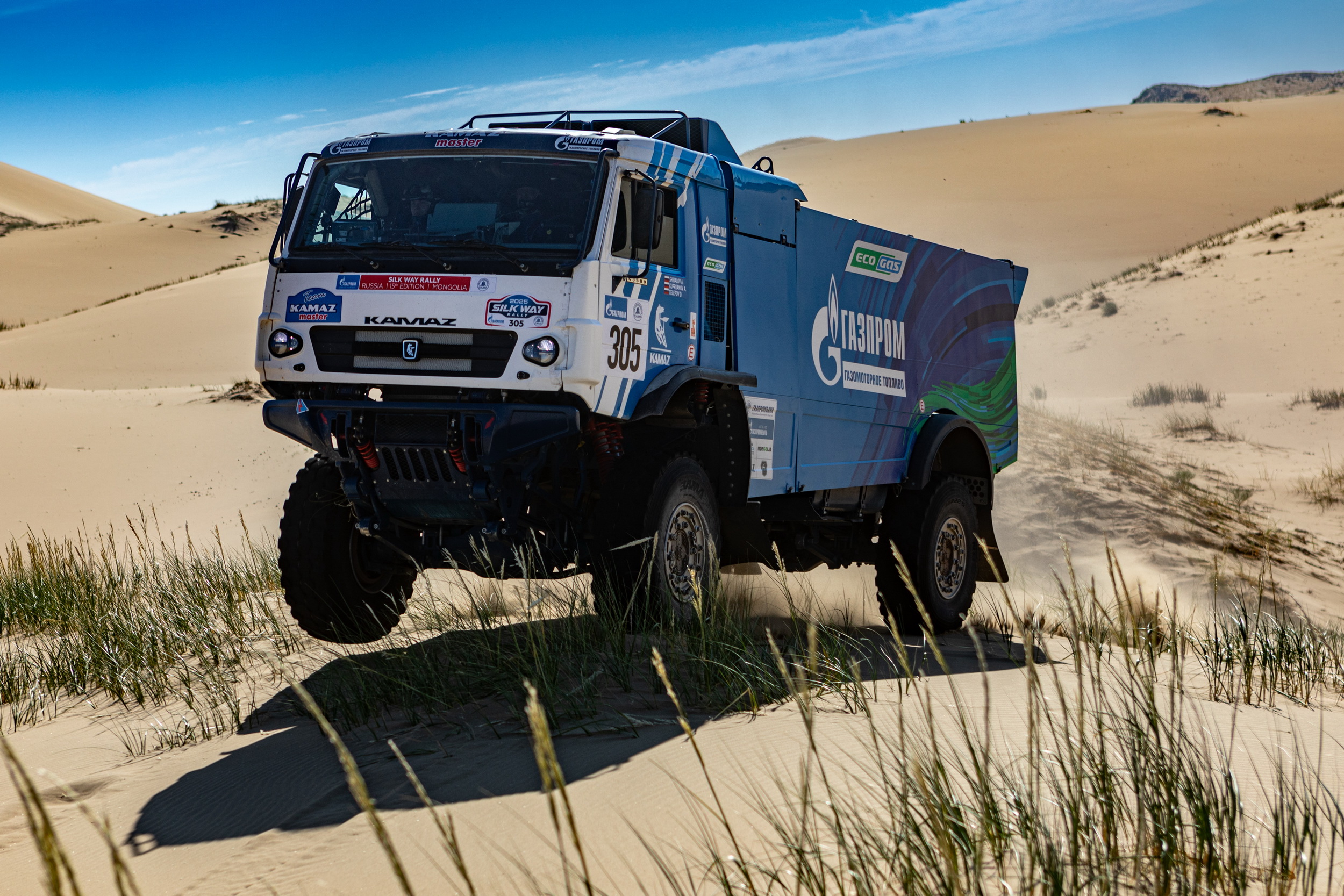Лучшее время на этапе у пилота «КАМАЗ-мастера», дебютанта «Шёлкового пути» Алмаза Ахмедова: «Сегодня всё было нормально, не жарко, пески были не слишком сложные — около 30 километров. Ехали довольно быстро, видели в песках Антона Шибалова, пытались к нему приблизиться, но он ездит быстро по пескам и при этом аккуратно. Старались из вида его не терять и ехать быстро».