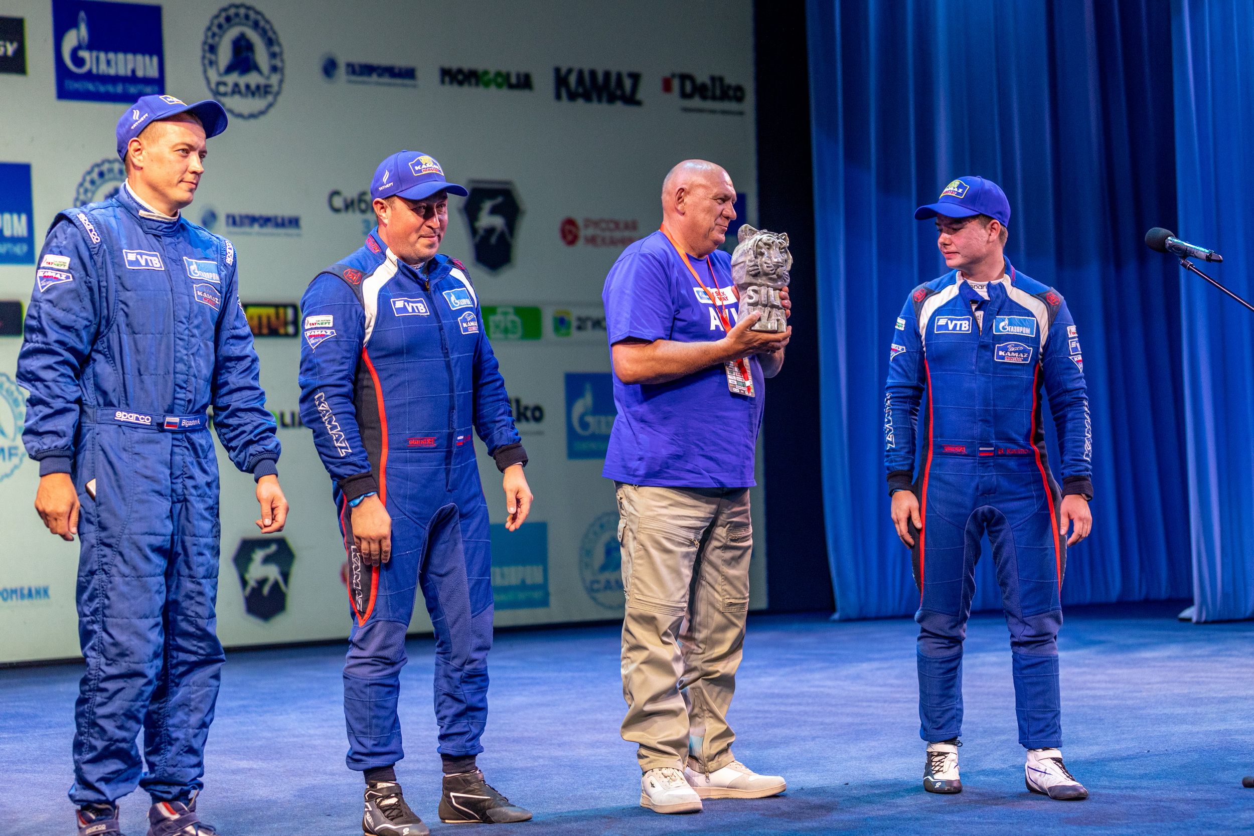 И в обеих номинациях победил экипаж камазовца Богдана Каримова. Он проехал пролог за 5 минут 43 секунды, а после трамплина пролетел 21 метр. В качестве наград Каримов получил от компании «ЭН+ Туристическая инфраструктура» сертификат на туристическую путёвку на Байкал на двух человек, который вручил генеральный директор ООО «Гранд Байкал Развитие» Виктор Григоров, а также часовой полёт на четырёх человек над озером Байкал от компании «Авиа-Май». Кроме того, спортсмену вручили Кубок Белого тигра из местного минерала и воплощающий символ Международного ралли «Шелковый путь», изготовленный по инициативе АО «Байкал кварц самоцветы».