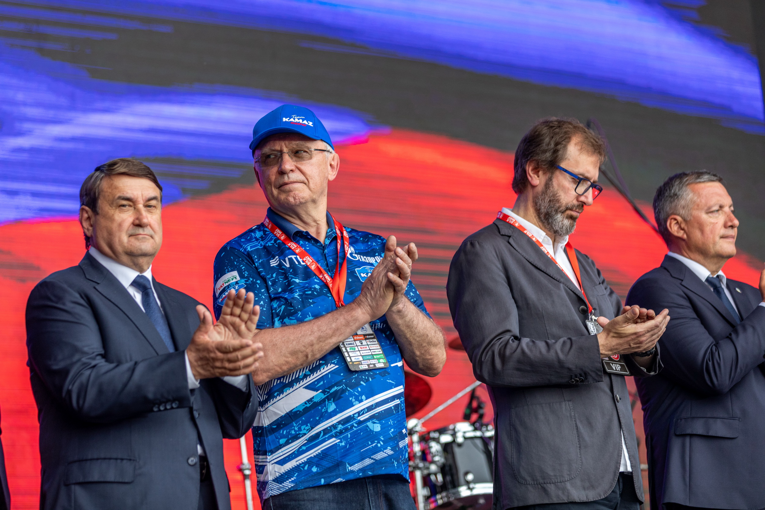 Следующим слово взял председатель Общероссийской общественной организации «Союз машиностроителей России», генеральный директор государственной корпорации «Ростех», Герой Российской Федерации Сергей Чемезов. «Для меня большая честь приветствовать вас от имени государственной корпорации «Ростех» на старте одного из самых престижных и знаковых международных автомобильных соревнований, — сказал он. — «Шелковый путь» это не просто ралли, это спорт, который объединяет страны, людей и технологии. Он демонстрирует силу воли, инженерную мысль и характер настоящих чемпионов. Отдельные слова благодарности — организаторам за то, что ежегодно прокладывают новые интересные маршруты — как для участников, так и зрителей. И эти маршруты укрепляют связи между Россией, Азией и всем миром. Желаю всем участникам удачи, крепкого духа и побед. Пусть дорога будет трудной, но достойной ваших амбиций».
