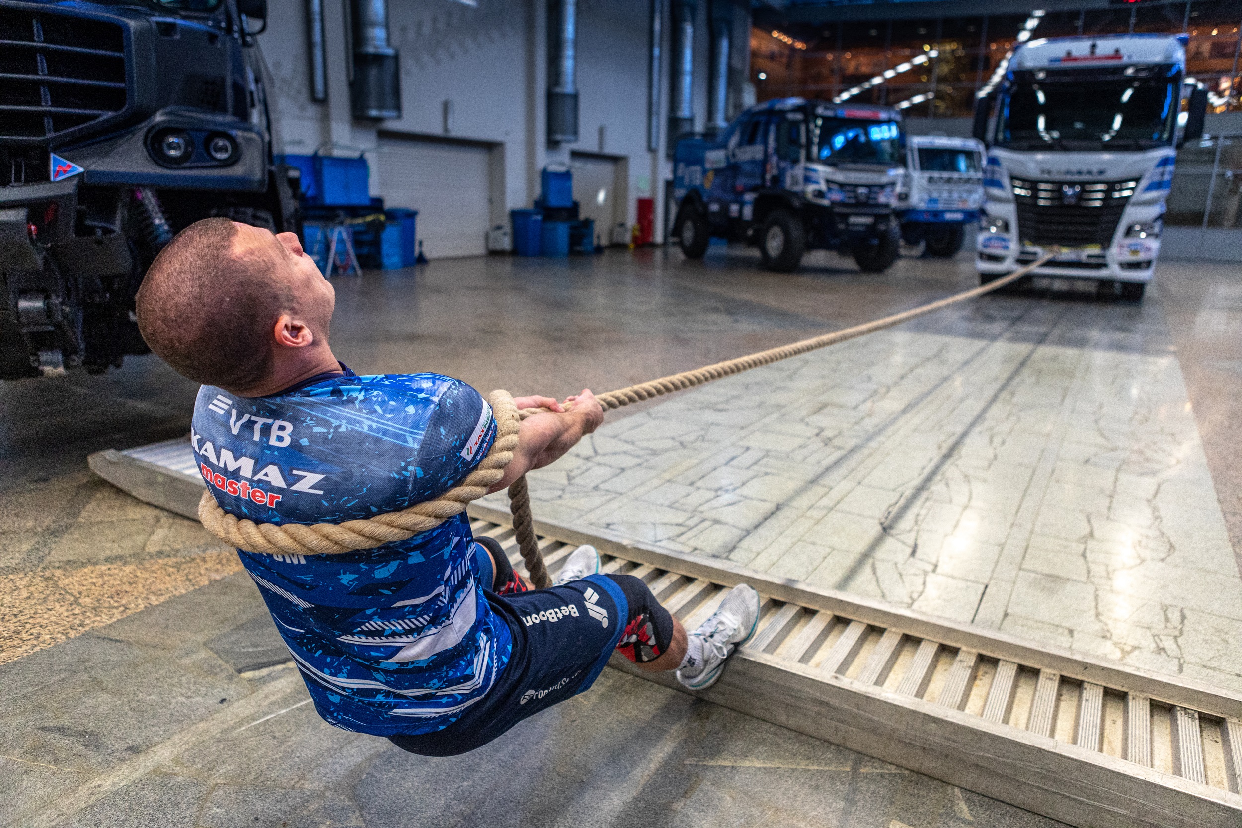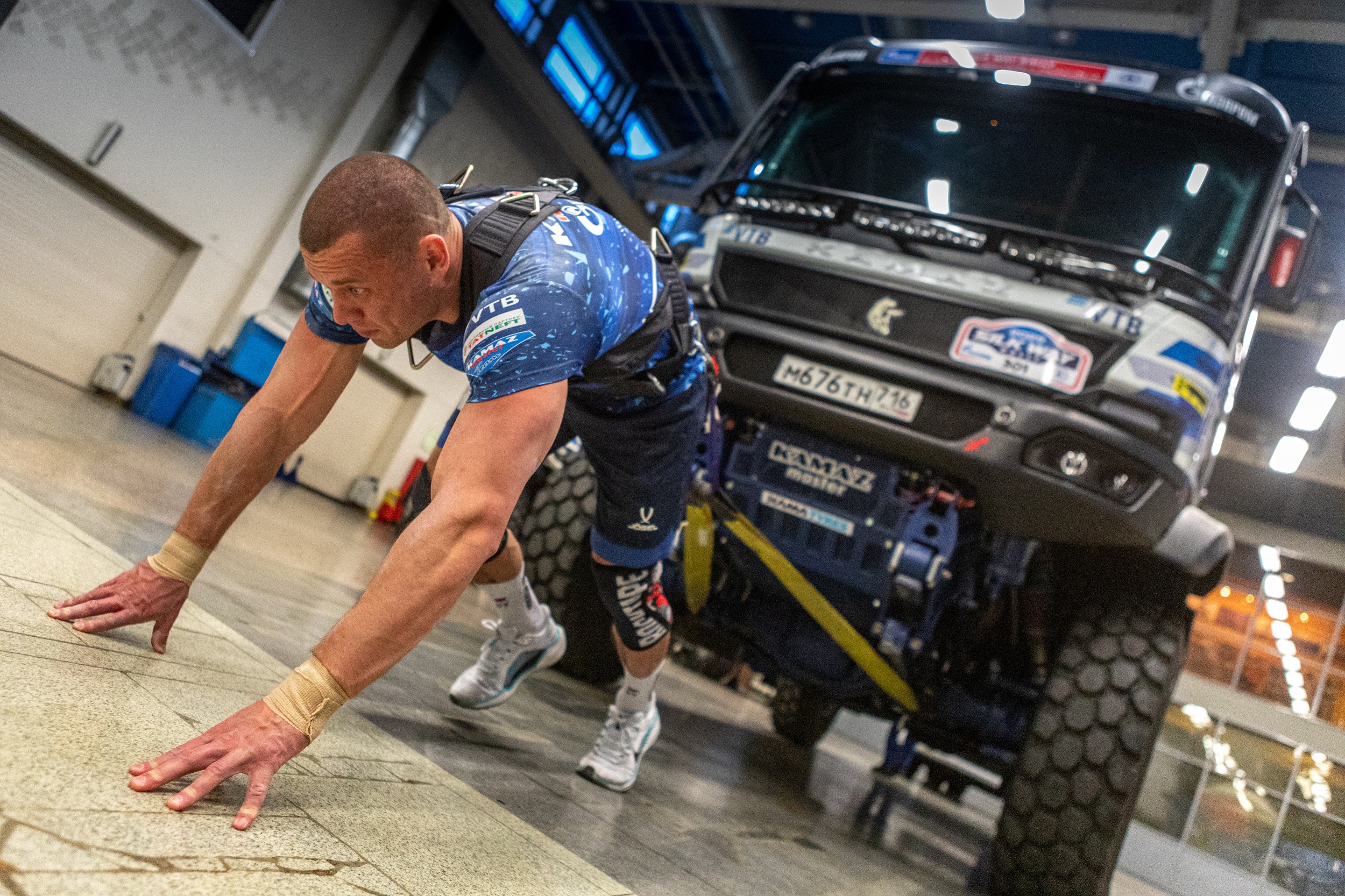 Знакомство известного силача с командой началось с тестового заезда на спортивном «КАМАЗе».